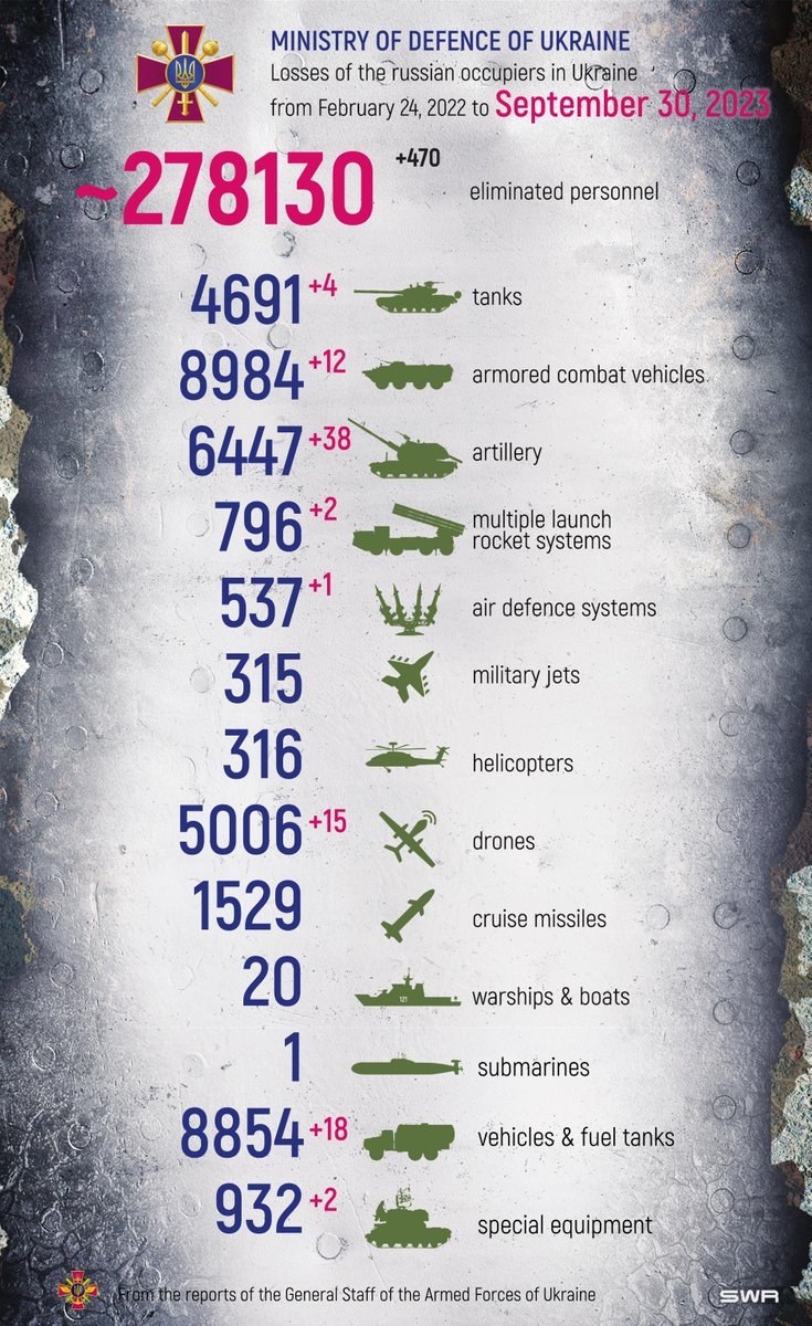 el que ha lanzado ataques una vez más en dirección a Staromaiorske y al norte de Pryiutne, sin cambios. En el segundo, se sigue combatiendo al sur de Robotyne, en donde la aviación rusa lanza