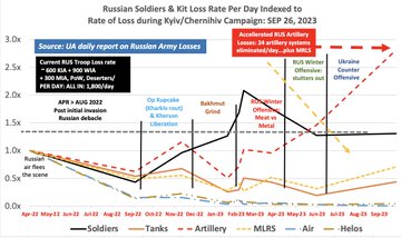 Además, el envío de munición Excalibur occidental a Ucrania marca una diferencia de precisión que Rusia no puede equiparar tecnológicamente ni tiene capacidad e insumos para competir. Eso explica en gran parte la mayor tasa de pérdida en unidades artilleras rusas
