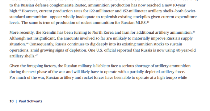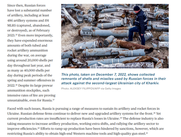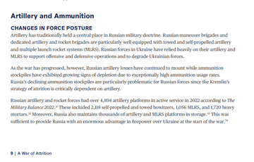Agrega luego que “En diciembre (…) oficiales del Ejército de EEUU reportaron que la artillería rusa había declinado en un 75%, alentando las especulaciones sobre la posibilidad que Rusia este con un nivel pelagrosamente bajo de artillería o quizás esté intentando ahorrarla”