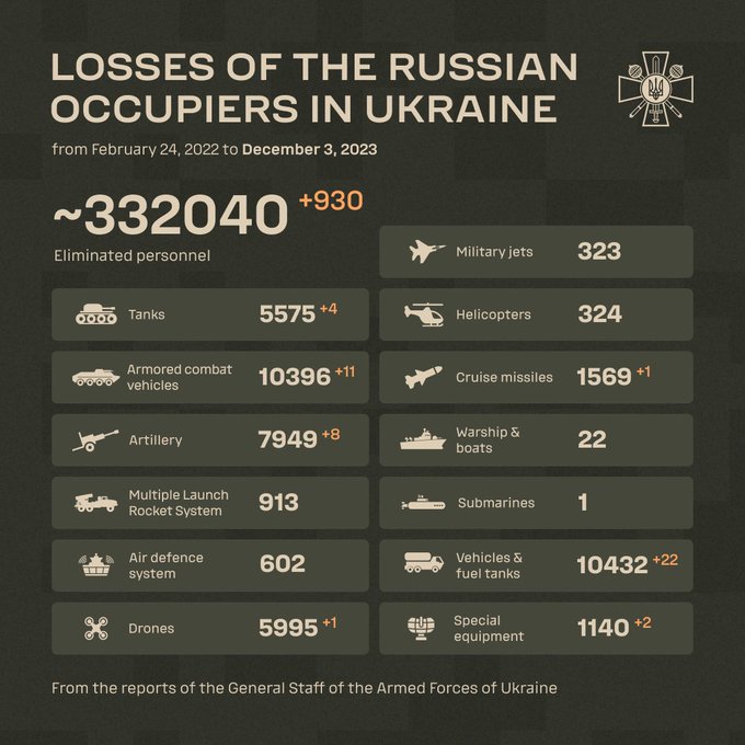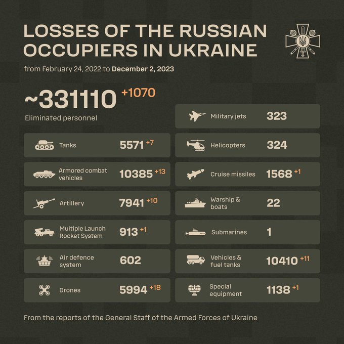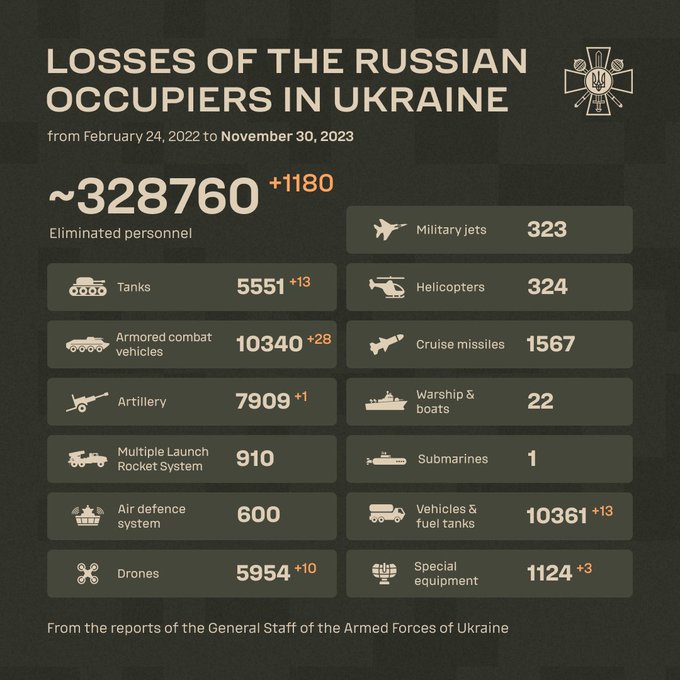 y según los ucranianos con una cifra de bajas rusas diaria prácticamente inusitada-, no están suponiendo cambios de posiciones de consideración. De hecho, los datos referentes a todo el mes de noviembre