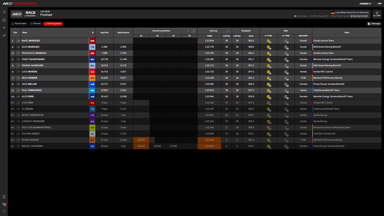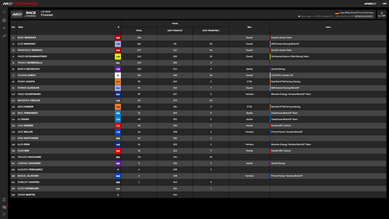Marc Márquez remonta en agua para ganar el Sprint de Sachsenring ante Marco Bezzecchi