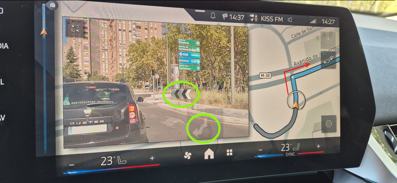 La navegación y la locución da las indicaciones correctas pero las imágenes superpuestas sobre la vista real son justo lo contrario.