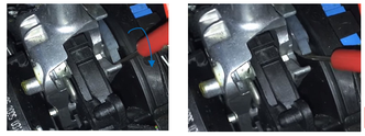 2- Con la herramienta de color rojo en forma de T que se suministra con el coche (se ubica en la caja de herramientas del maletero), aflojar la tapa de plástico izquierda en el sentido contrario a las agujas del reloj.