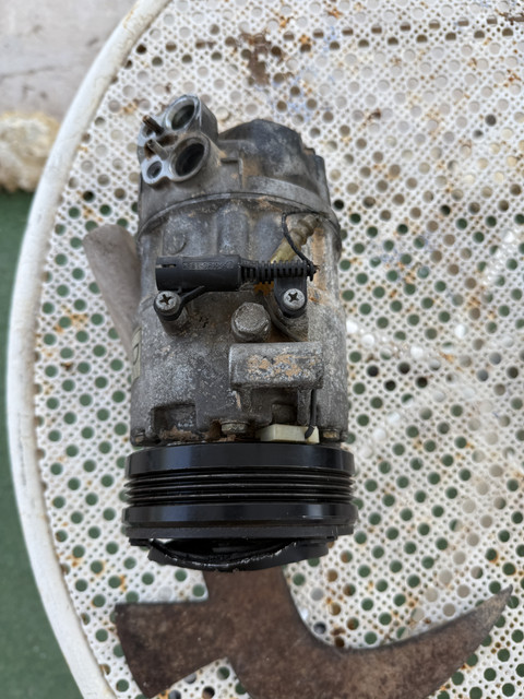 A lo mejor no arranca al no tener presion el circuito. Tendria logica que lo hubieran programado para apagarse en una rotura del sistema.El compresor estaba que daba asco, lleno de aceite, pero parecía de motor, le he pegado una buena limpieza, he sacado la polea completa y he engrasado un poco el rodamiento también.