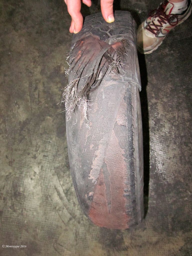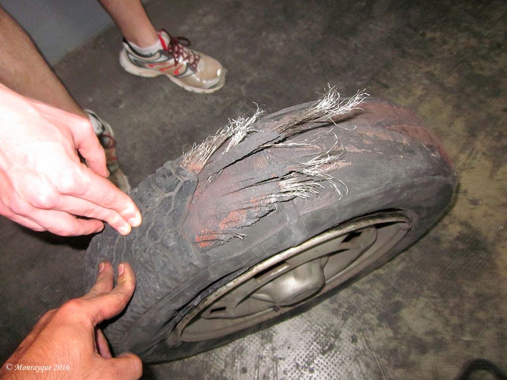 Conclusión: reventón de neumático por degradación de material debido al paso del tiempo. La semana que viene cambio todos los neumáticos.