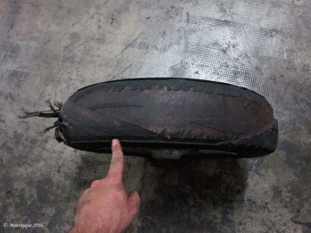 Y pensar que en una prueba deportiva en carretera cerrada el coche cogió 160 km/h de marcador entre curva y curva con estos mismos neumáticos (hace años de esto). Así que COROLARIO: no hay que fiarse de los neumáticos por muy buen aspecto que presenten. No cuesta nada dedicarle 20 minutos con una linterna a mirar por todos los recovecos en buscas de desperfectos, algún bulto palpando toda la superficie con la mano, etc.