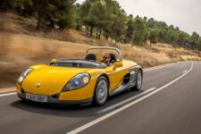 La suspensión independiente de doble triángulo y amortiguadores helicoidales Bilstein mantiene este roadster plano en curva. Pero, sinceramente, me esperaba mayor firmeza en los viajes cerrados. Aun así, debido a su ligereza y a sus anchos neumáticos, el Renault Spider tiene un paso por curva rapidísimo.