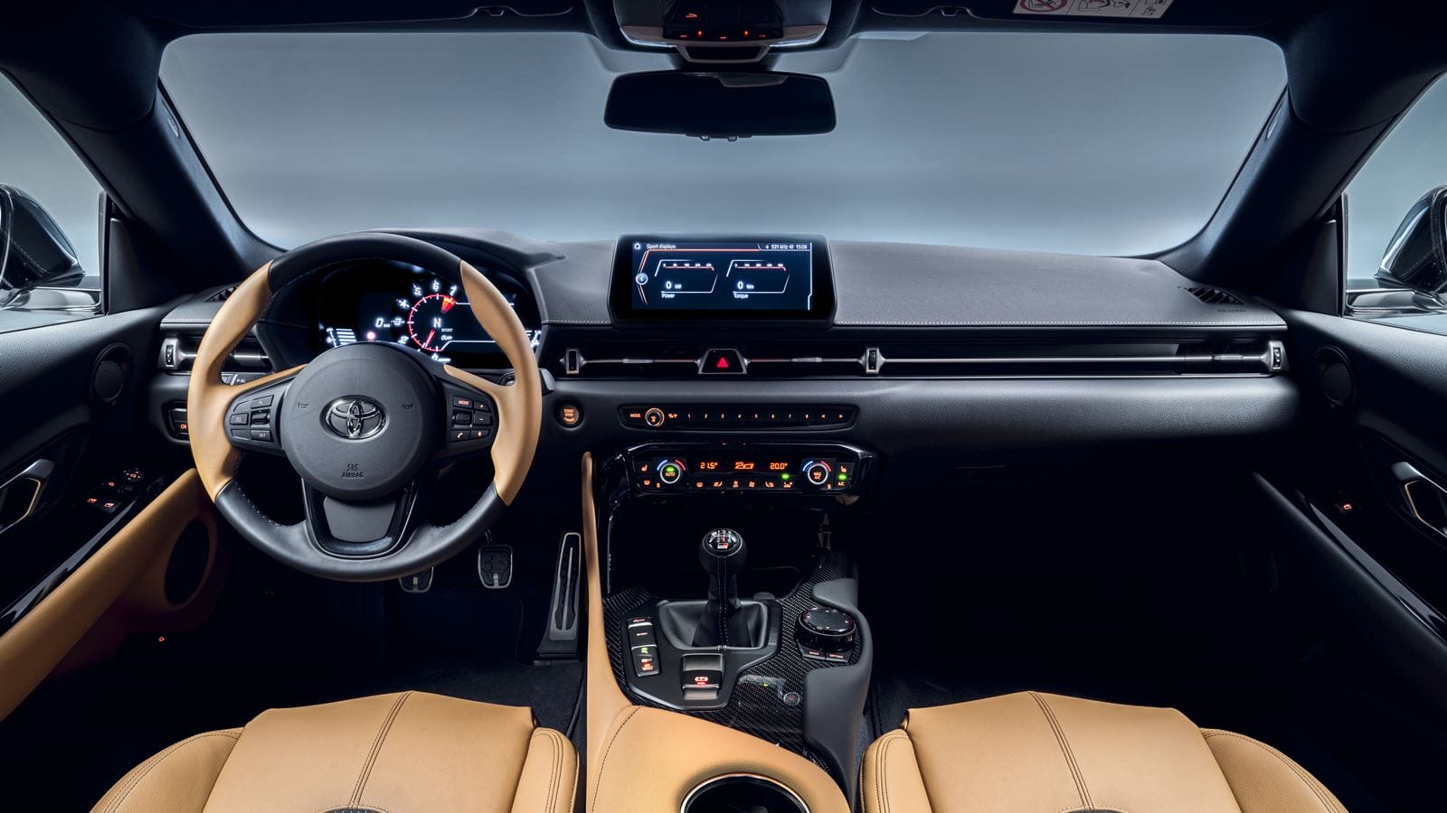 Los cambios para acomodar la nueva transmisión manual en el GR Supra no se limitaron al tren motriz. También se prestó mucha atención a cómo se podría acomodar el nuevo sistema en el habitáculo.